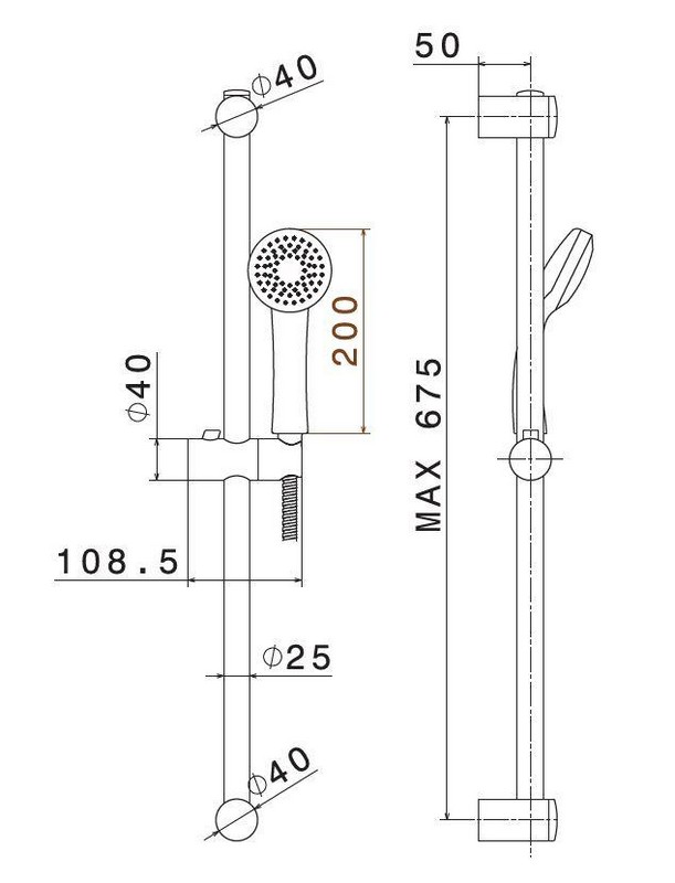 Душевая стойка длиной 150 см, с подвижным держателем лейки ручного душа из пластика и шлангом из ПВХ. Без выхода для подачи воды.
