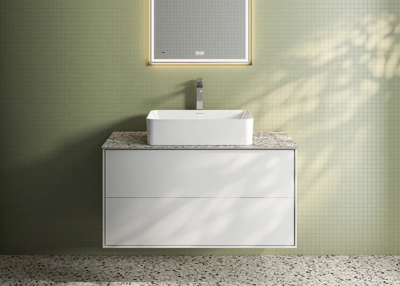 Подвесные тумбы PLAZA Modern — это воплощение современного стиля. В размере 100 см представлены версии с двумя выдвижными ящиками, а также с одним ящиком и удобной открытой полкой. Все тумбы оснащены пластиковым разделителем в белом цвете. Тумба рассчитана на использование со столешницей, совместимой с мебелью PLAZA. Для данного артикула корпус и фасад в белом матовом цвете, внутренняя отделка и открытая зона с подсветкой — ЛДСП в цвете «Шалфей». Ящик оснащен системой Push to Open. Рекомендуемые смесители от KERAMA MARAZZI: OLE, PIANO, FUTURA, ETERNA.