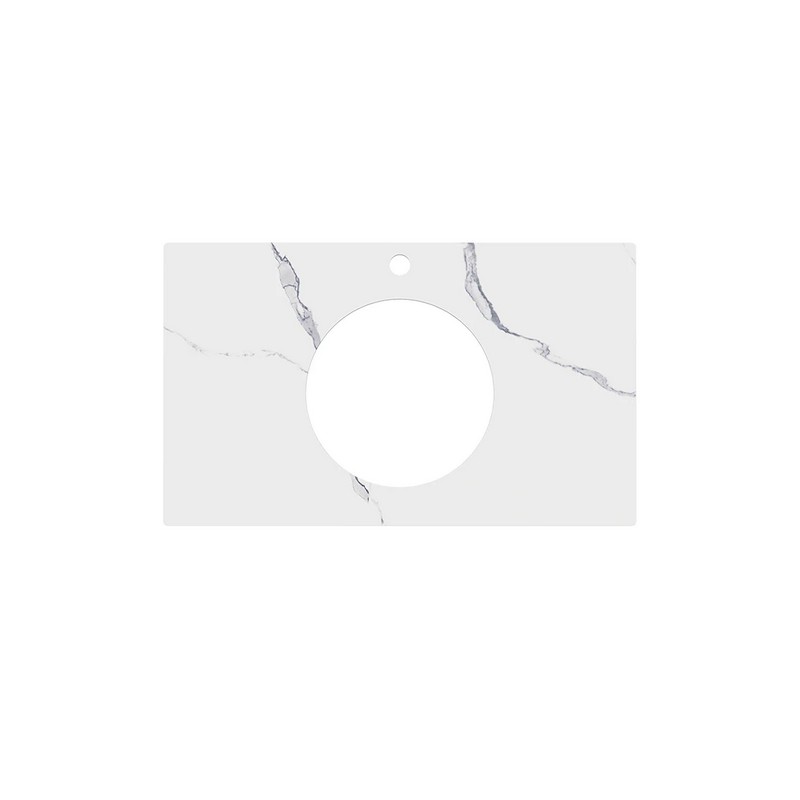 Столешница из керамического гранита Монте Тиберио с отверстием под смеситель. Предназначена для использования с накладными раковинами АртБейзинс и тумбами серии Плаза Модерн и Плаза Некст. Отверстия для раковины и смесителя располагаются в центре. Смеситель устанавливается в столешницу (используйте смесители с подходящим типом установки)