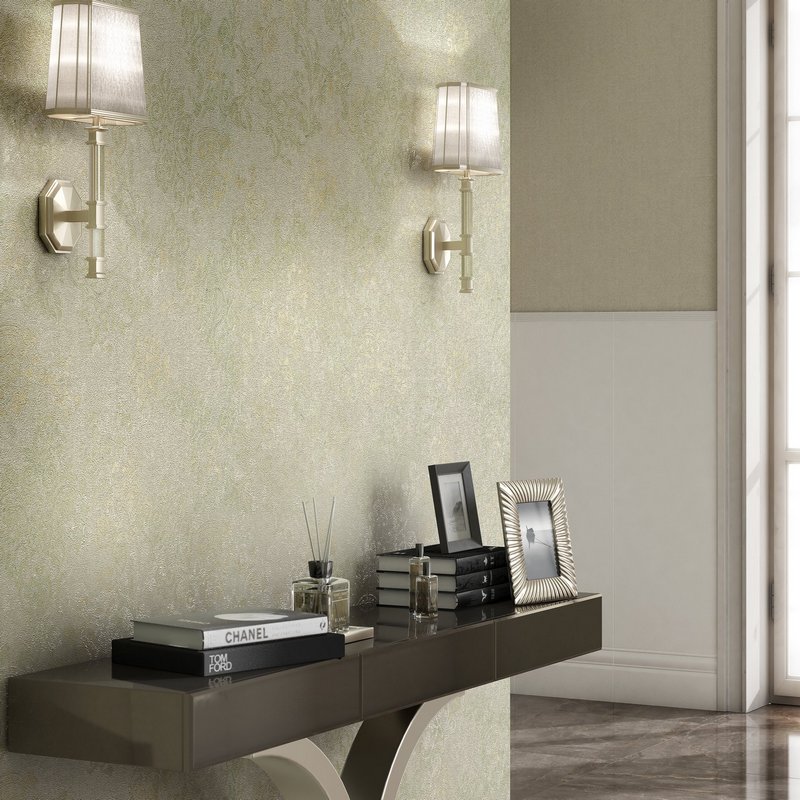 Сегодня в интерьерах все чаще встречаются сочетания обоев и керамической плитки. Предлагаемая брендом серия идеально гармонирует со многими коллекциями керамики. Благодаря светлой пастельной гамме оттенков обои «Флора» роскошно смотрятся с плиткой, которая имитирует камень или мрамор.