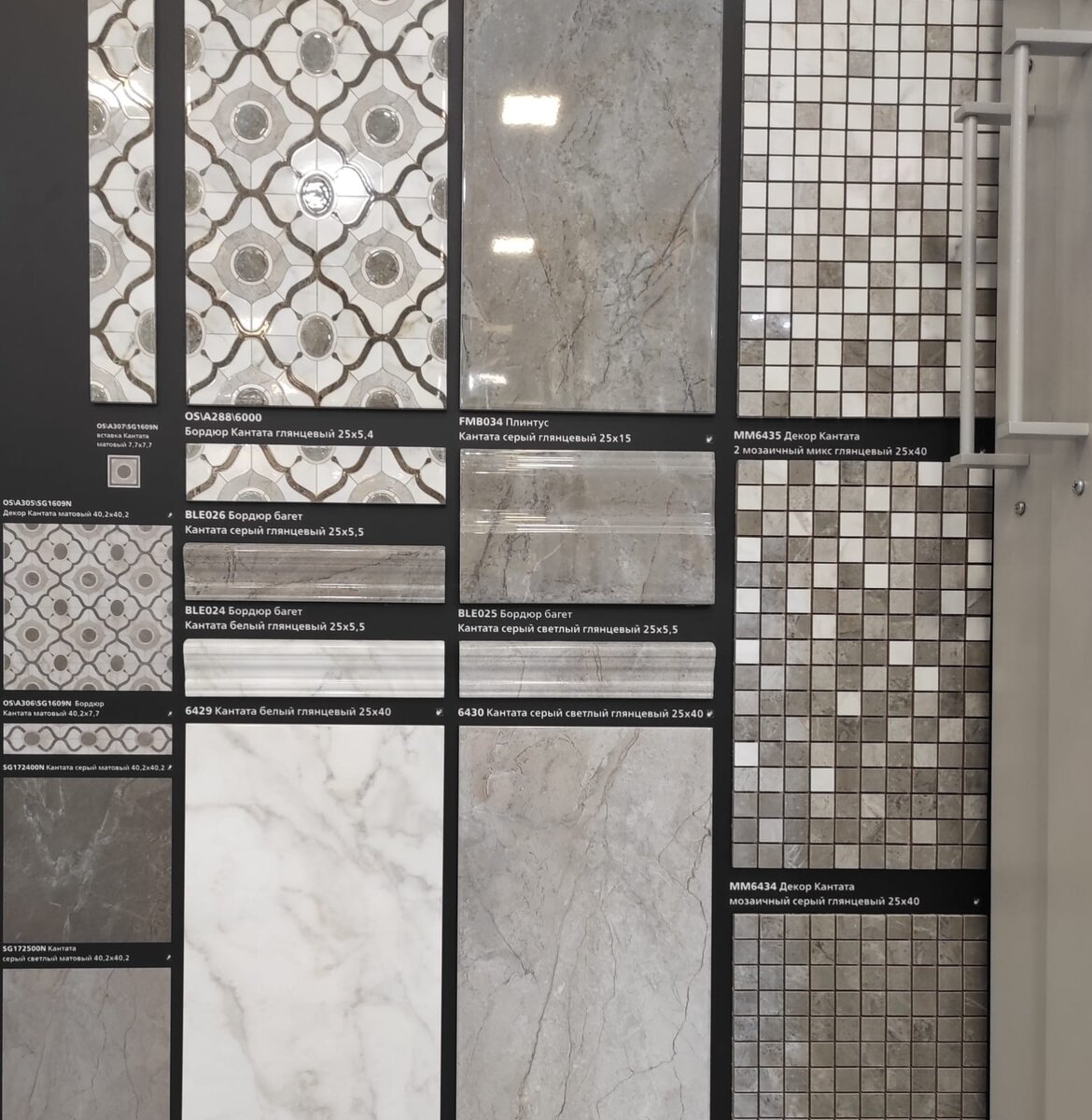 Название коллекции Кантата происходит от итальянского "cantare" (петь, исполнять) и, подобно музыкальному произведению, объединяет различные элементы в гармоничную композицию. В проекте использованы три оттенка мрамора, дополненные декоративными элементами с флорентийским четырехлистником и мозаичным градиентом.