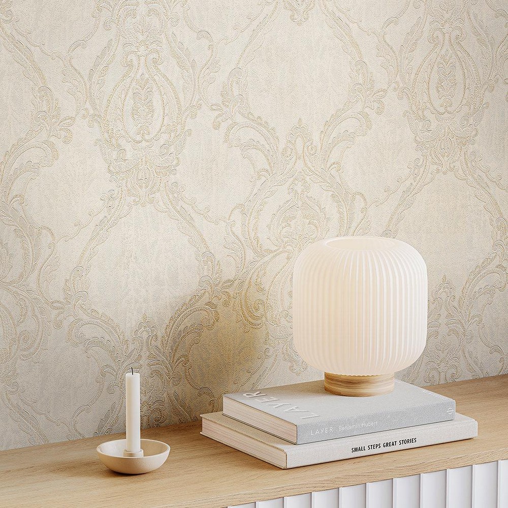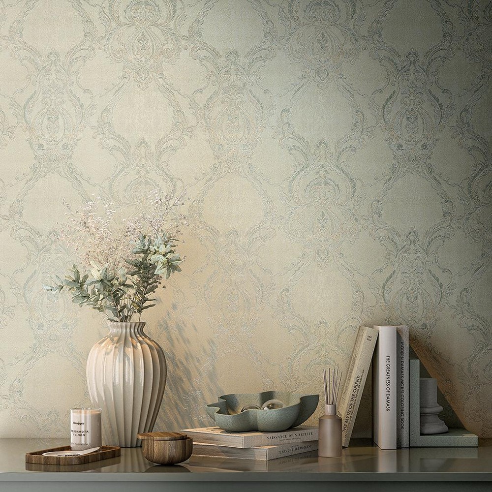 Дамасский орнамент несёт визуальную нагрузку исторического декора, что обычно ограничивает его применение классическими интерьерами. Обои «Ориент» расширяют область использования этого узора за счёт технологии горячего тиснения, создающей физический рельеф на поверхности. Объёмная структура меняет восприятие орнамента – вместо плоского рисунка материал получает теневую графику, зависящую от освещения. При направленном свете боковые поверхности рельефа отбрасывают тени, усиливая контраст между выступающими элементами и фоном. При рассеянном освещении рельеф читается деликатнее, создавая лишь намёк на объём. Тактильная составляющая дополняет визуальное восприятие – поверхность можно не только рассматривать, но и ощущать прикосновением.